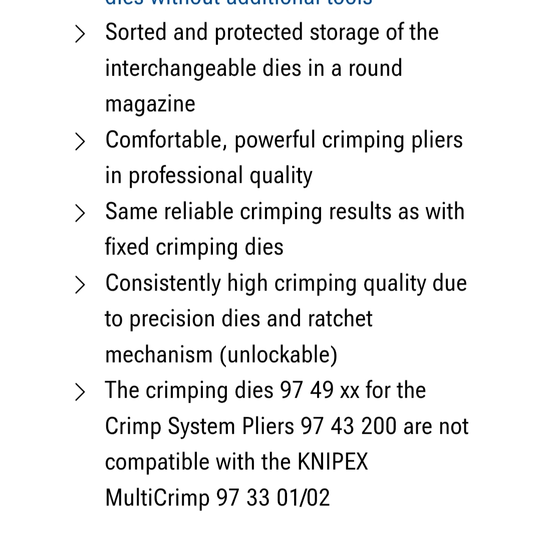 به دلیل وجود قفل شوندگی و مکانیزم ضامن دار و خود رها شونده ، کیفیت پرس کردن بسیار بالا و دقیق و سرعت کار در تکرار های بالا، بسیار زیاد میباشد.