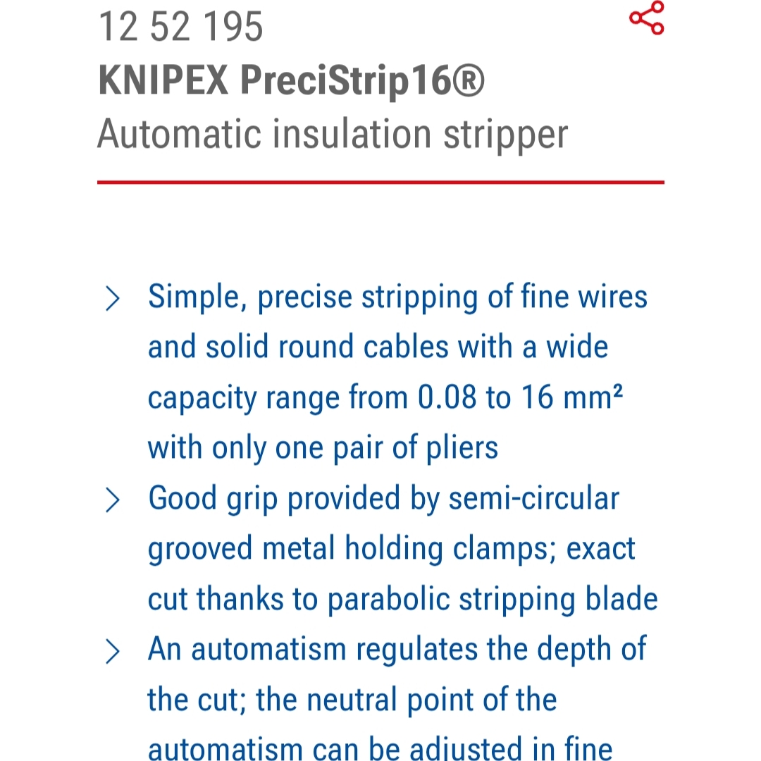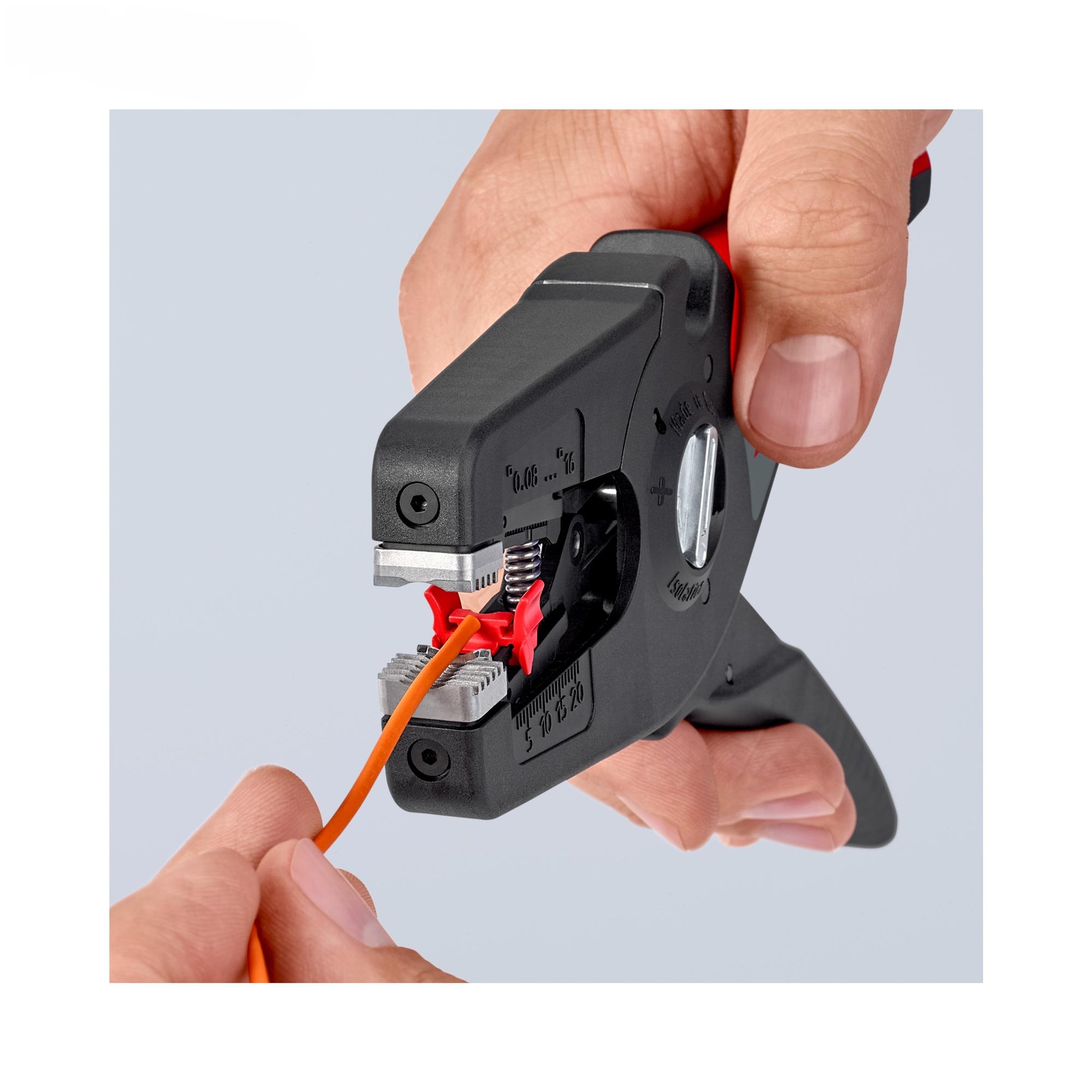دستگاه به صورت اتوماتیک سیم ها را تا 16 میلی متر مربع بدون هیچ تنظیمی با سرعت و دقت بالا و بدون اینکه سیم هیچ آسیبی ببیند لخت میکند و خودش بر اساس سایز سیم مورد نظر تنظیم میشود.