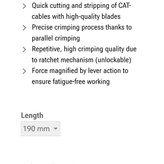 دستگاه کابل های تلفن نواری و بدون محاظ سایز ۶ و سایز ۱۲ میلی متر و کابل های با سطح مقطع گرد را میتواند قطع کند و لخت کند.