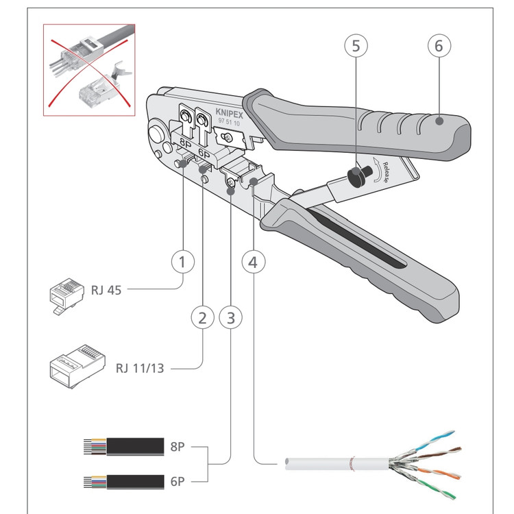 آچار سوکت زن شبکه و تلفن و داده کنیپکس مدل 975110