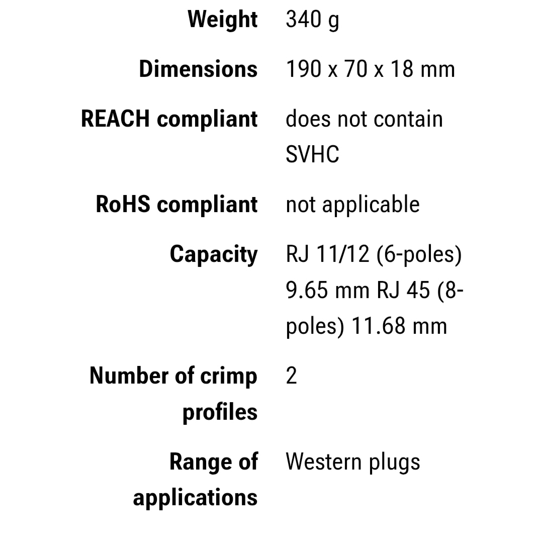 ظرفیت دستگاه برای پرس سوکت های تلفن