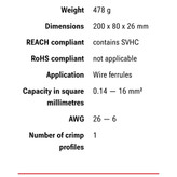 دستگاه، وایرشو های تک و دوبل را از سایز 0.14 تا سایز 16 میلی متر مربع پرس میکند.