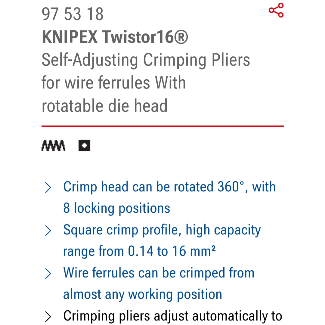 دستگاه، وایرشو های تک و دوبل را از سایز 0.14 تا سایز 16 میلی متر مربع پرس میکند.