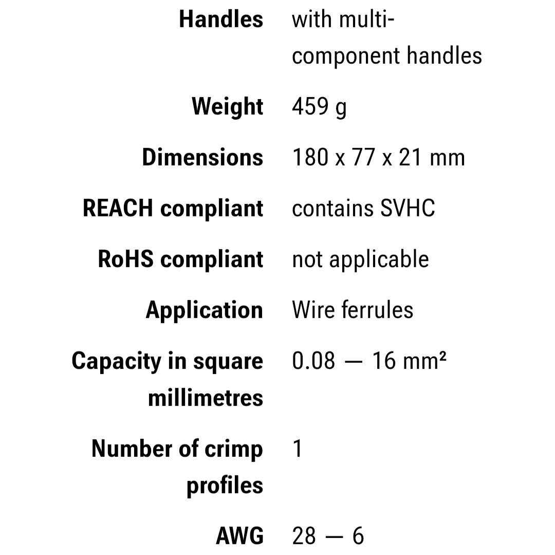 دسته ارگونومیک و استفاده راحت ،عملکرد روان و وزن سبک،فشرده سازی مربع یا چهارگوش زن،کیفیت بالا ،طول عمر بالا،پرس با کیفیت با تکرار سریع ،پرس در محدوده ی AWG28-5 از ویژگی های محصول میباشد.